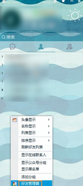 1、在QQ面板空白处右键,打开“好友管理器”;