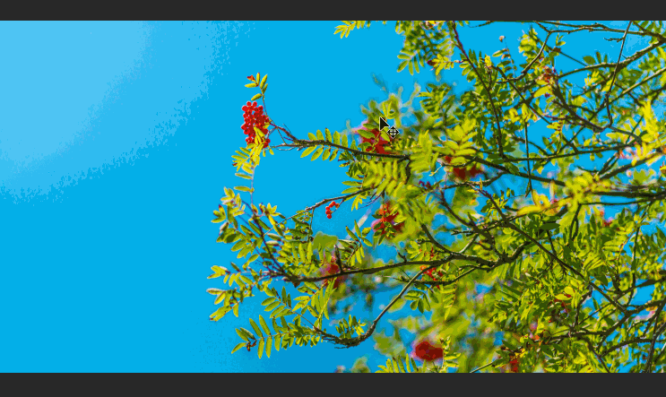“快速选择工具”,顾名思义,就是“快速”地选择画面中你想要或者你不想要的部分,通过工具栏用鼠标直接选中该工具,或者用快捷键“W”,对准画面框选即可,同时,可以配合中括号“[”或“]”来缩放画笔大小,更精确的框选,如下图所示: