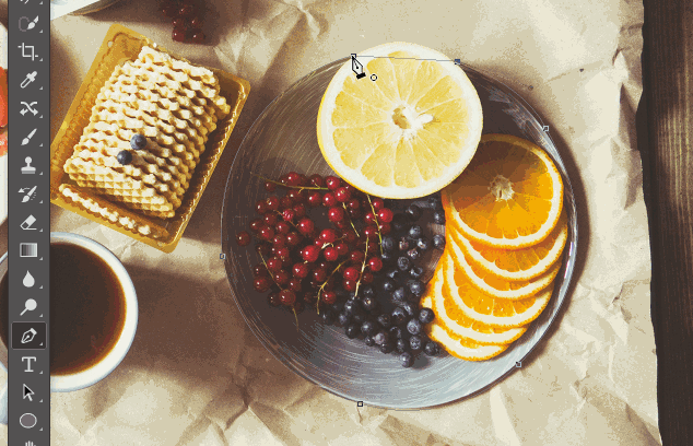 相较于只能画直线做选区的“多边形套索工具”来说,“钢笔工具”则是无敌的,直线和平滑曲线都是它的看家本领,对准轮廓绘制路径。严格来说,用它来做选区,精细度是足够高的,但是之所以给出了三星评级,主要是在“好用指数”上拉了分,钢笔的入门与熟练需要大量的练习来掌握,操作难度上要高于其他工具。