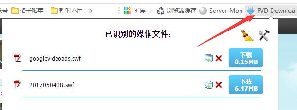 在扩展中心搜索“FVD Downloader”,安装。这个插件可以快速下载网页上的媒体文件,如视频或者swf等格式的文件。