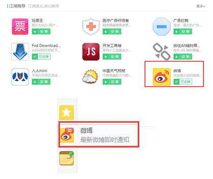 打开扩展中心,发现默认的应用有微博、便签、登录管家等常用插件。