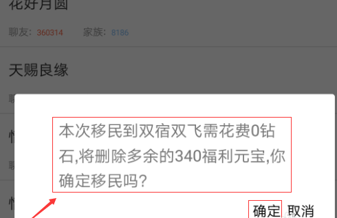 6、点击双宿双飞以后,系统提示是否确定移民,我们直接点击“确定”,就完成了移民。