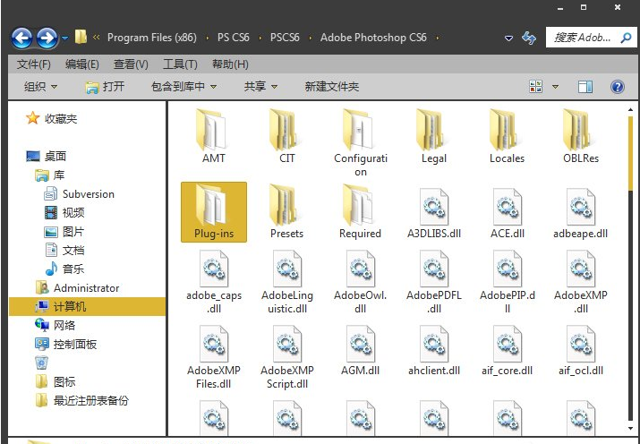 3、打开PS的根目录,找到Plug-ins文件夹,该文件夹是存放插件的文件夹,双击进入。