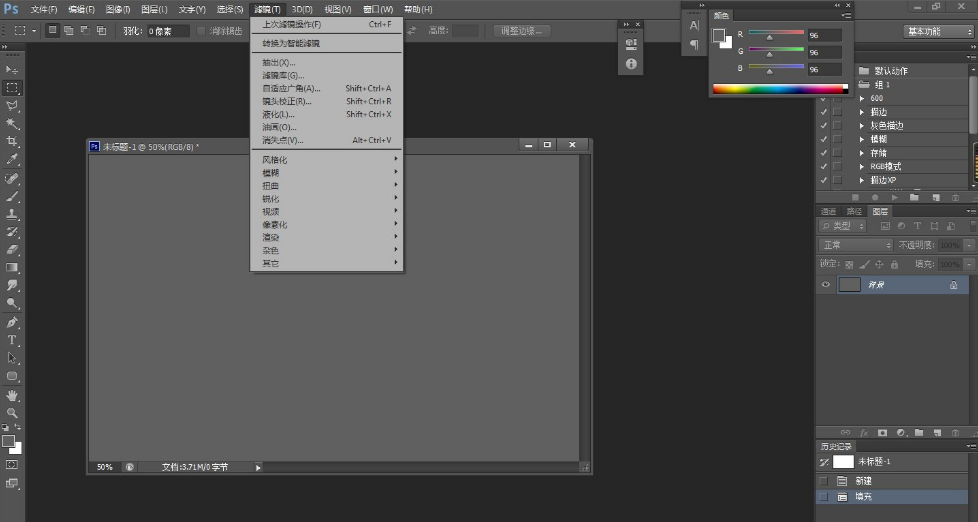 6、打开PS,软件会自动加载新装的滤镜文件。如图,滤镜安装完成