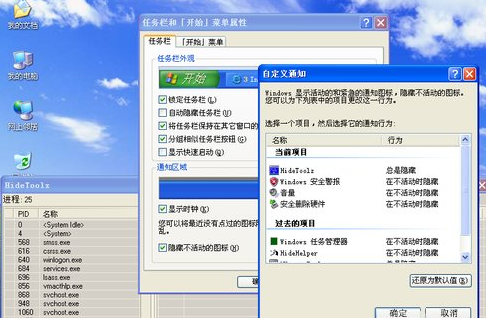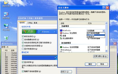 4、当然,运行HideToolz的时候最好也把HideToolz的托盘图标也隐藏了。