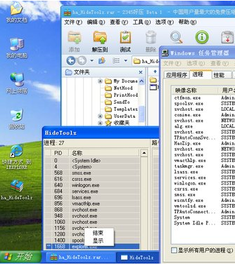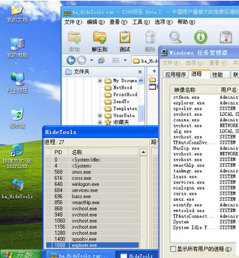 1、下载HideToolz到桌面上。鼠标双击打开该压缩包,再直接双击该软件即可打开该软件了,并且在软件里面可以看见目前的进程数为多少个。