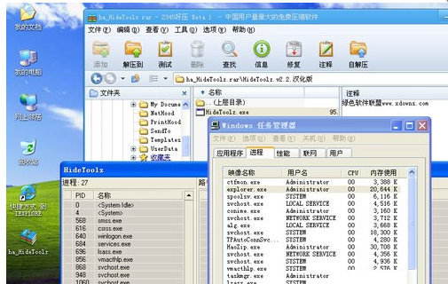 电脑使用过程中用户打开运行的软件程序都叫做进程,我们可以随时看到电脑正在运行的程序。但是由于某种原因,有时候我们需要将进程里面的程序隐藏掉,但是却不知道怎么做,下面小编就给大家介绍下用HideToolz软件来隐藏进程的方法!