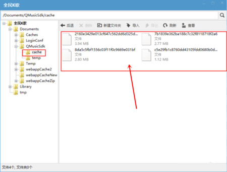 2、点开应用找到缓存文件夹,你会发现一些莫名其妙的文件,不用管这类文件。把文件直接导出到电脑上。