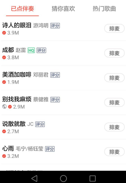 我们在这个界面你可以搜索你想唱的一首歌,这还有一个排麦的,你点击可以排麦序。跟KTV的是一样的作用。如果你想要跟好友在线连麦合唱怎么办?很简单,在下图中有一个语音席的地方,你点击语音席,只要加入了语音席就可以在线说话了,你只要点一首合唱的歌,跟好友一起合唱就好了。