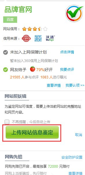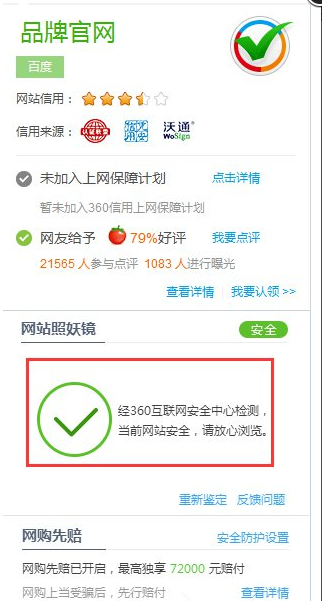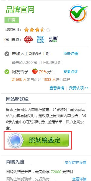 借助360照妖镜来对网站进行检测,如果检测出来的结果是可信的,那么你就可以放心的浏览该网站,如果检测出来的结果是不可信的或者怀疑的,那最好小心一点使用,不要在该网站输入隐私信息。