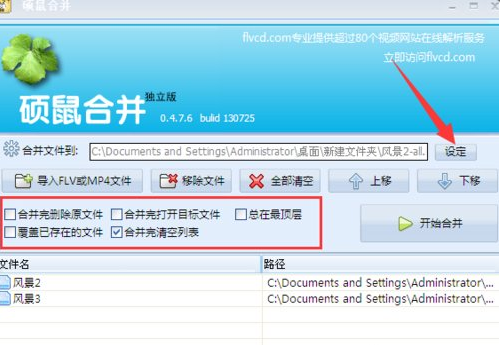 6、点击【设定】选项,可以设置保存路径,还有一些合并完成后的设置,根据自己想要设定: