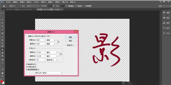 这时的水印毕竟还太大,用起来不方便。按Alt+I+I更改画布大小,还是调成n00*n00的: