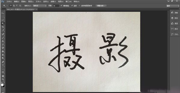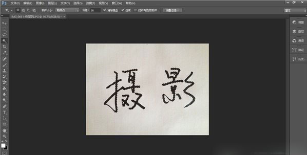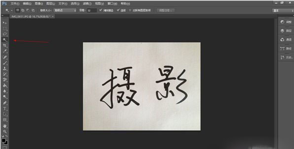 3、对比度调好后,现在要对文字进行抠图,方法有很多,最方便的算魔棒和通道。