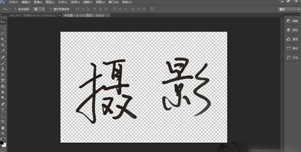 回到照片,还是用左边的移动工具(左侧栏最上面那个鼠标图标)将选区内的文字拖到新建画布中: