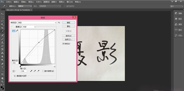 2、打开照片以后按Ctrl+M调出曲线,把曲线上拉或下拉来调亮或调暗照片,使文字和背景达到最大的对比度:
