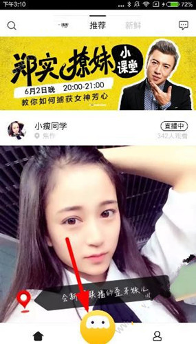 1、打开火山直播app,点击下方中间的按钮,如下图: