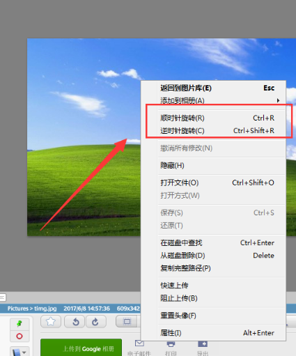 2、接着在编辑界面的预览框中用鼠标右键点击该图片,在弹出的选项中就可以看到“顺时针旋转”以及“逆时针旋转”两个功能了,点击这两个功能即可旋转图片;