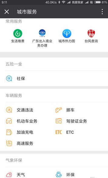 微信城市服务 一堆便民服务