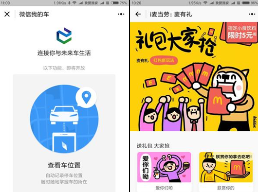 2、微信我的车: 自动记录停车位置、停车支付、好友位置共享、智能目的地推荐。