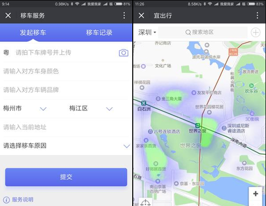 2、最烦乱停车:移车服务可以帮助用户快捷的联系挡道车的车主。