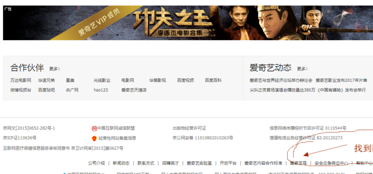 1、我们先登录爱奇艺,在视频首页找到最底部的信息登记栏,找到爱奇艺号,然后点击