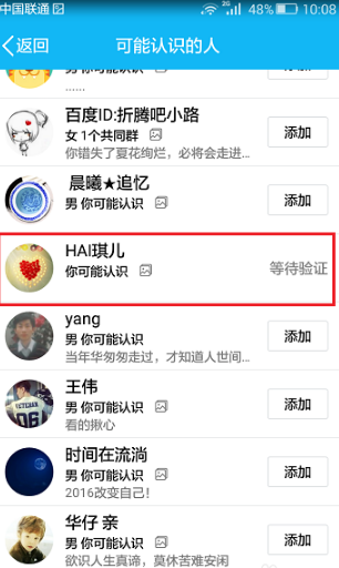 3、进去可能认识的人的界面之后,可以进行添加有哪些认识的人