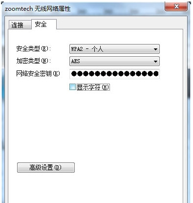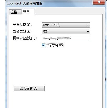 第二步:这个时候你就可以看到这个网络的属性,然后你选择“安全”,这个时候你可以看到你的无线密码的账号以及类型