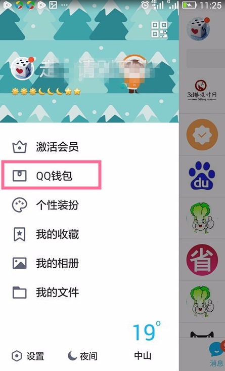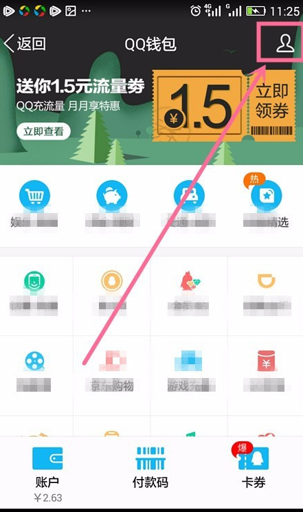 2、点开QQ钱包,进入QQ钱包首页,在右上角找到小人头像(个人中心)。