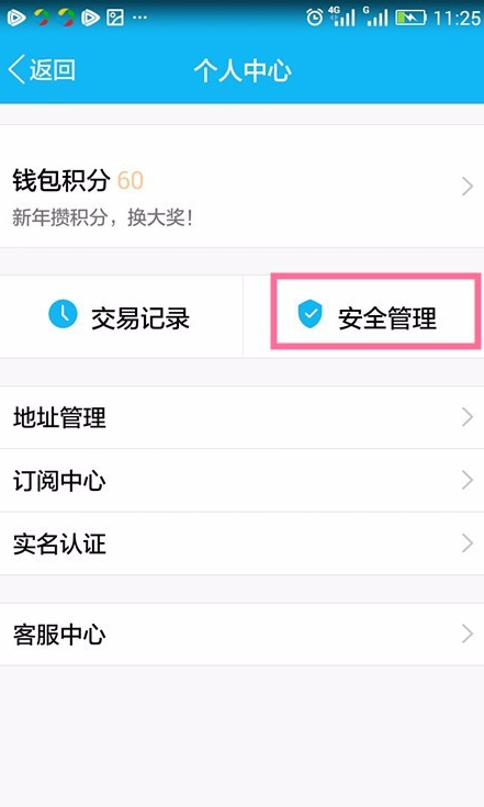 3、点开小头像,进入个人中心,找到“安全管理”;