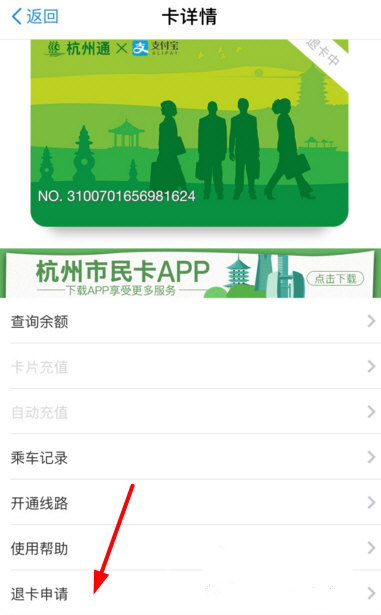 进入到公交卡页面,点击【退款申请】就可以了。