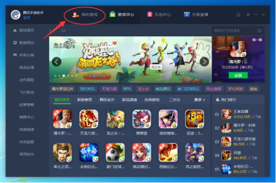 1、首先打开腾讯手游助手,然后在其界面的顶部打开“我的游戏”;