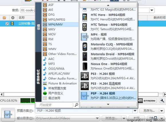 这里以转换为PSP-H264视频为例: