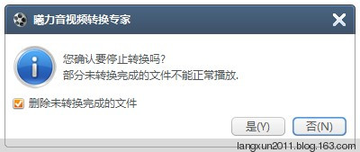当你选择停止转换时,软件会弹出一个确认窗口出来,并且可以发现,软件还提供了一个“删除未完成的文件” 的选项。