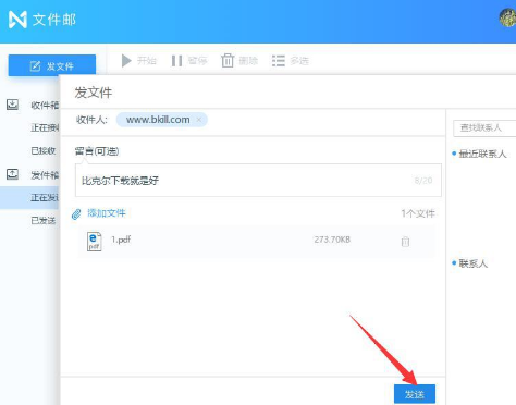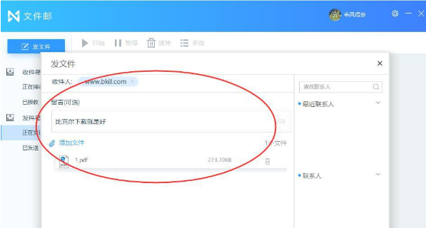 3、添加收件人,可以添加多个,输入留言,添加需要发送的文件,支持添加多个