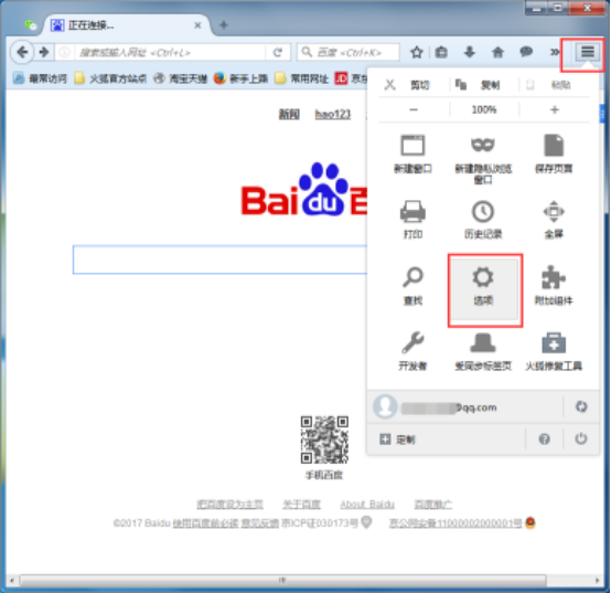 2、登录后依旧是在右上角的菜单中打开“选项”功能;