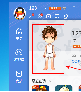 1、首先打开QQ游戏大厅并登录自己的QQ账号,登录成功后将鼠标放到QQ游戏界面的左上角的头像上,如下图所示: