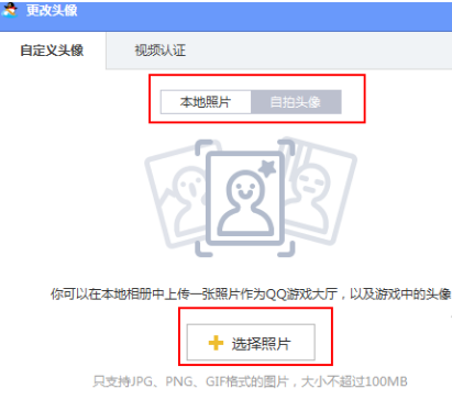 4、在“更改头像”窗口中有两种更换头像的方式,一个是添加本地照片,一个是用电脑摄像头进行拍摄,根据自己的需求选择即可。