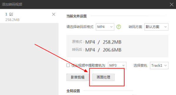 2、添加好后会出现下图界面,在这里打开“画面处理”;
