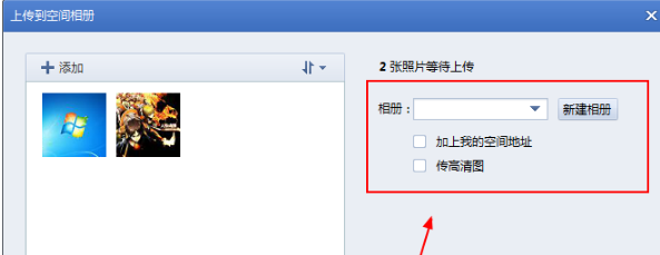 3、选择好照片后点击“上传到空间相册”,接着它会让我们选择上传到哪个相册,选择好相册后点击“开始上传”就可以了。