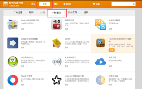 3、如果觉得这个不好用,那么我们还可以在猎豹应用市场的类别里找到翻译,选择一个自己喜欢的下载安装就可以使用了。
