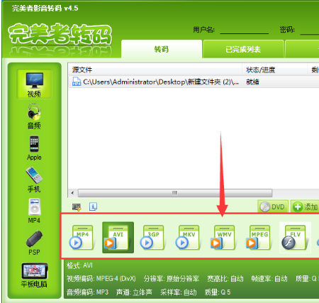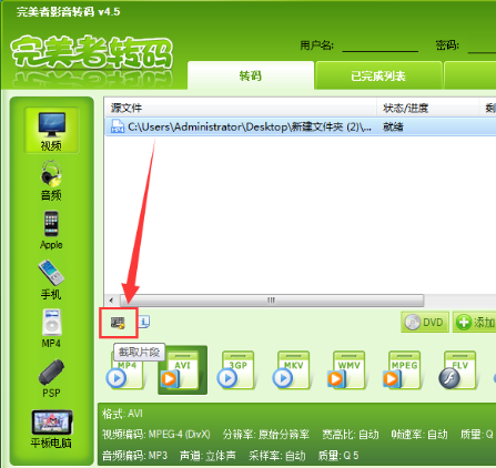 完美者转码截取视频片段的方法