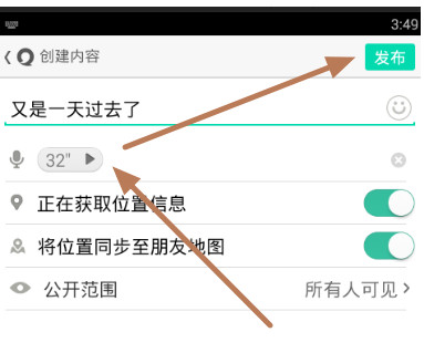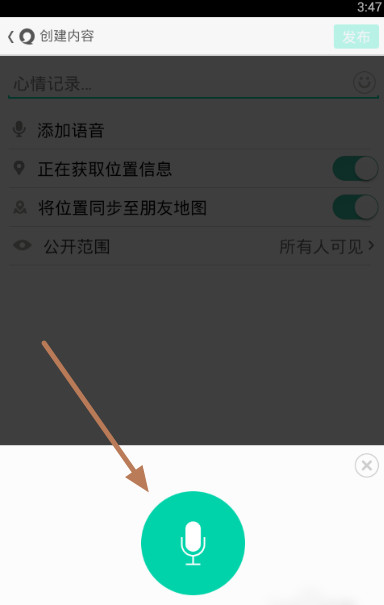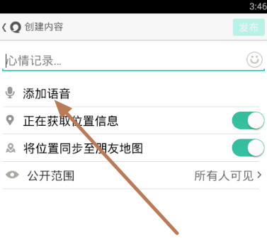 5、听这名字,大家很快就想到了QQ空间的说说,发表说说的功能不只是文字,还可以添加一条语音。