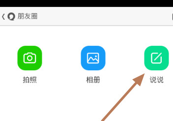 4、弹出功能选择,这里和微信的选择就不同了,除了相片与视频外,要发送语音,选择“说说”即可。