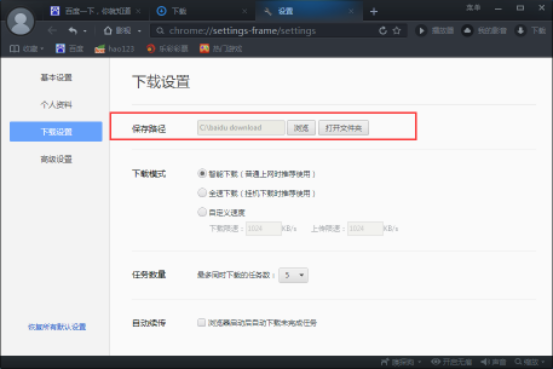 5、另外点击该界面右上角的“设置”按钮,在打开的界面中还可以设置下载文件保存的路径哦!如下图所示: