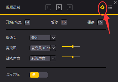 4、打开“视频录制”后会弹出一个录制菜单,点击录制菜单上的“设置”按钮可以看到视频录制的一些操作按键及基本设置;