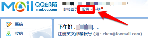 2、进入邮箱后,选择【设置】打开设置进行的相关的功能设置。