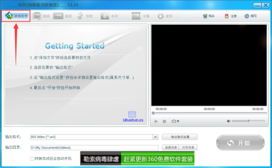 1、打开快转视频格式转换器,然后点击其界面左上角的“添加文件”,并把想要转换格式的音乐视频文件添加进来;