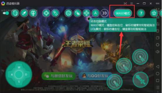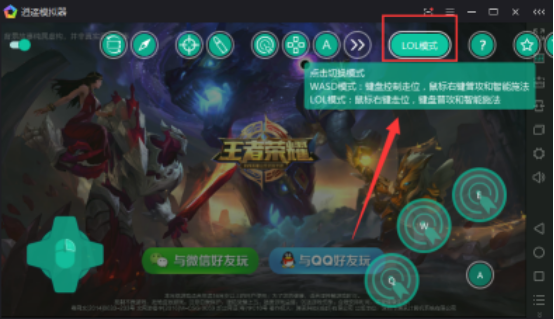 4、“WASD模式”是全键盘操作,“LOL模式”是键盘加鼠标操作,类似于端游英雄联盟;