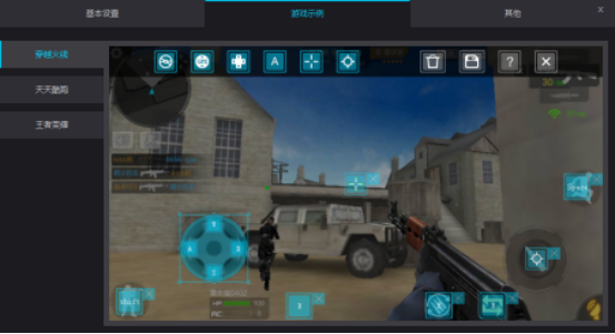 4、另外夜神安卓模拟器中还加入了MOBA游戏智能施法的按键、射击游戏的准星以及射击按键等。