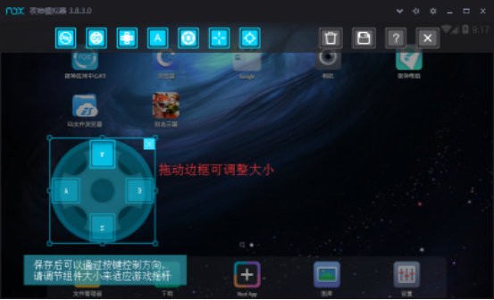 2、打开键盘操控后在夜神安卓模拟器顶部就可以看到各种按键了,我们只需将对应的按键拖动到游戏中的按键位置即可;